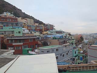 ![]() | 結構な急坂をどんどん登って行く。この急な斜面に家がひしめき合って建っている。Kkachigogae-ro から Okcheon-ro へ入る。 | |