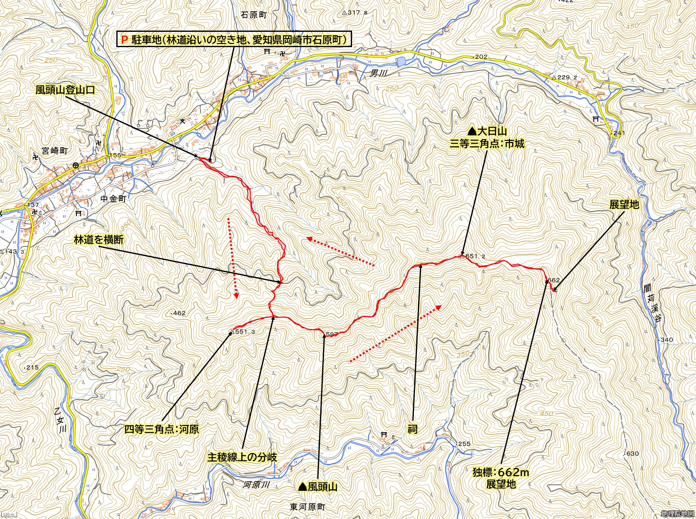 #駐車地(林道沿いの空き地、愛知県岡崎市石原町)