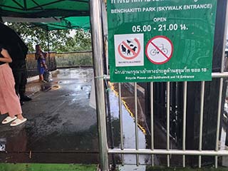 ![]() | #สะพานเขียว(Green Bridge、緑の橋) สะพานเขียว(Green Bridge、緑の橋)の東側のエントランス、ベンジャキティ公園のエントランスに来ました。雨が激しくなってきたので雨宿りします。 ベンジャキティ公園の開放時間は、5時から21時の間ですね。注意です。 | |