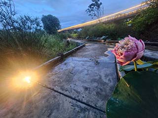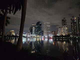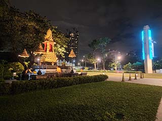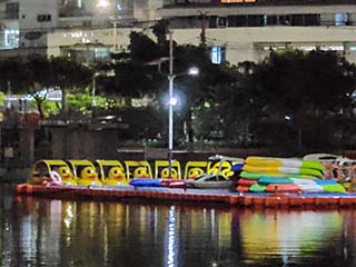 ![]() | ベンジャキティ池の西岸にたどり着きました。 水上ステージ(Water Stage)はベンジャキティ池の南側にあります。 すっかり夜ですね。 | |