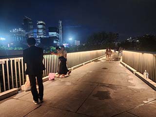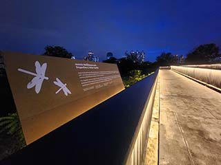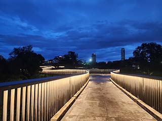 ![]() | 高架歩道(スカイウォーク)に戻ります。 ライトアップされた遊歩道の美しさに言葉もありません。 | |