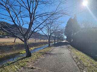 ![]() | 鳥羽川沿いのサイクリングロードに出る。 桜並木があります。時期になるときれいなんでしょうね! | |