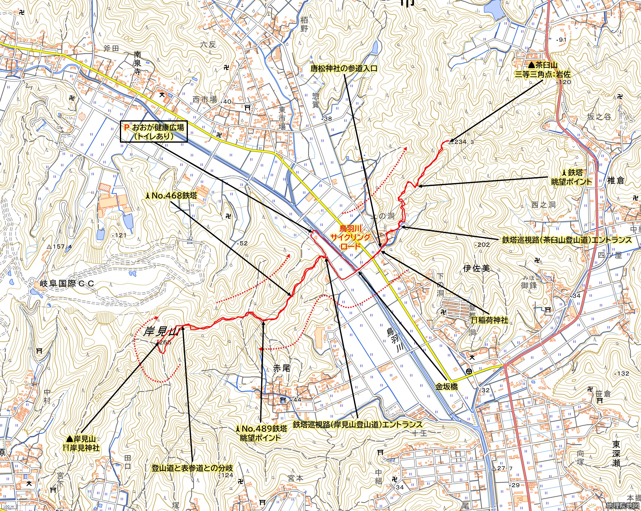 | 住所・山域 | 岐阜県山形市、鳥羽川サイクリングロード | |