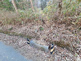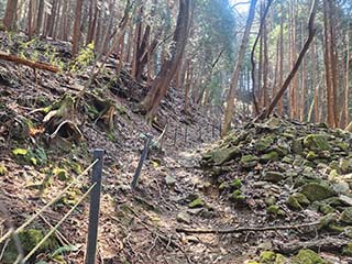 ![]() | #湯屋坂林道が横切る 立派な林道(湯屋坂林道)が横切る。林道を渡り直進です。 | |