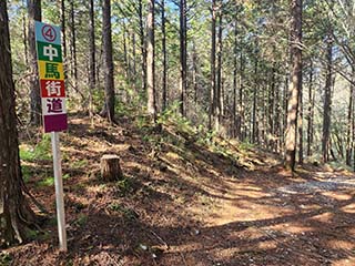 ![]() | #分岐、1.曽良山方面へ この分岐で中馬街道と別れ、左折して曽良山方面へ向かいます。 | |