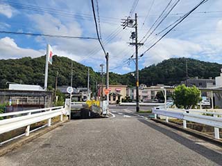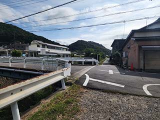 ![]() | 山綱川の支流を渡ります。橋の名前は「くろせやまばし」。 その先のバスが通う大きな道に出て左折します。 | |