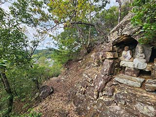 ![]() | お地蔵さんが現れます。お地蔵さんは登山道?参道?に沿ってたくさん配置されています。 阿弥陀寺が近い? | |