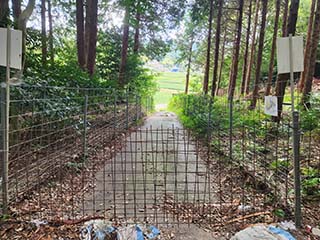 ![]() | #羽栗口(登城口) 防獣柵をこえると南側の登城口「羽栗口」に出ます。ココからは車道を歩きまーす。またGoogleMAPの出番です。 | |