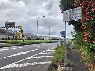 ![]() | 自動車・二輪車・原付自転車用の衣浦海底トンネルのエントランスです。歩行者・自転車は通行できませんのでパスします。 標識に従って側道を歩きます。直進580mで半田方面入口があると書かれています。 狭く、草の生い茂る、大丈夫?って感じの道ですが、大丈夫です。 徒歩で行く人は少ないのでしょうね。 (^^♪ | |