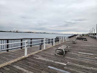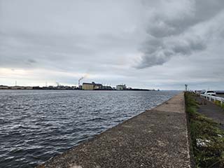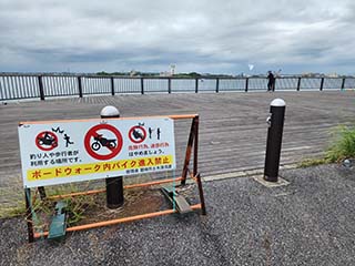 ![]() | #ボードウォーク ふ頭の突端までくるとボードウォーク(木道)があります。多くの釣り師さんが、丘釣りに勤しんでおられました。 最終的地の半田緑地・展望台が海の向こうに見えます。 | |