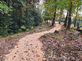 ![]() | 遊歩道。おが屑が道にまかれていてフカフカ。足に優しい道です。 | |