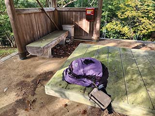 ![]() | 東屋があったので休憩。 「自由帳」や「かぶと山遊歩道だより」が置かれています。 ケースを開けたらカメムシが大量に冬眠?していてビックリしました。 | |