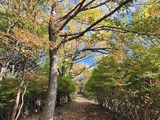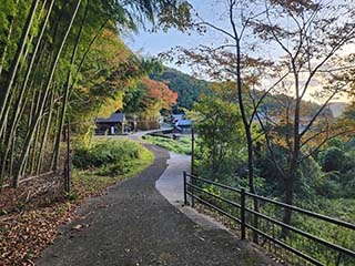 ![]() | 車道に出て登っていくと… | |