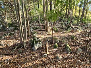 ![]() | #神籠石の碑 環状列石群の核心部でしょうか?遊歩道に戻ります。 | |